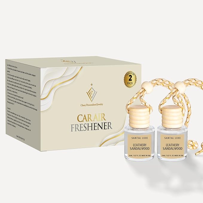 C Classy Car Air Freshener Hanging 2 Pack, Leathery Sandalwood Essential Oil Diffuser, Car Fresheners for Men&Women, Long-Lasting Air Freshener for C ar, C ar Accessories, Made in USA