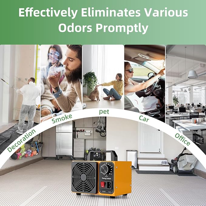 - 【Versatile Applications | 360° Odor Elimination】The advanced dual-fan design provides complete 360° ozone coverage, even in irregular spaces. Perfect for homes, cars, offices, commercial spaces, boats, basements, smoking areas, and pet rooms