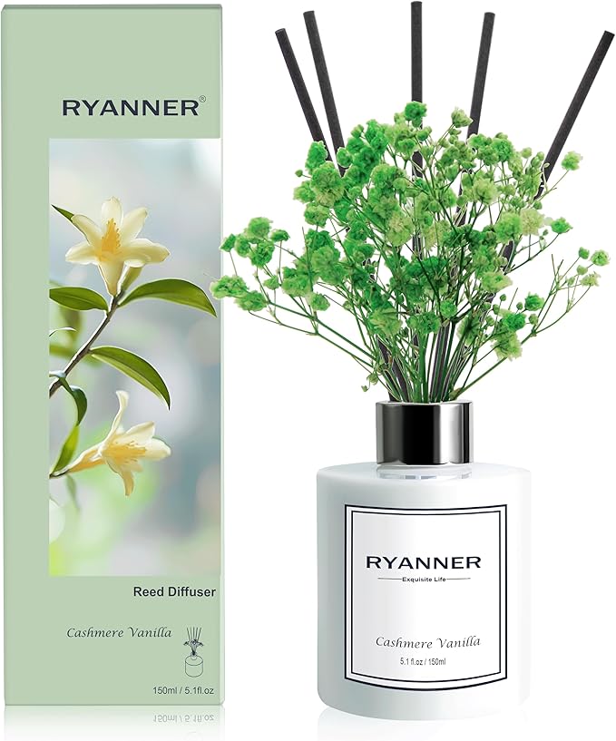 Reed Diffuser Set,5.1 fl oz Cashmere Vanilla Scent Diffuser with Sticks Home Fragrance Reed Diffuser with Essential Oil for Bathroom Shelf Decor&Air Freshener,Home Bathroom Office Decor&Gifts
