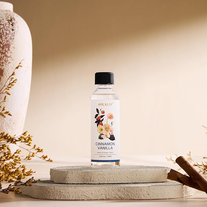 Airkeep Reed Diffuser Oil Refill/Cinnamon Vanilla/3.38oz(100ml/1 Pack/Scented Oil Refill for Reed Diffuser Home Fragrance for Bedroom, Bathroom Office Home Decor