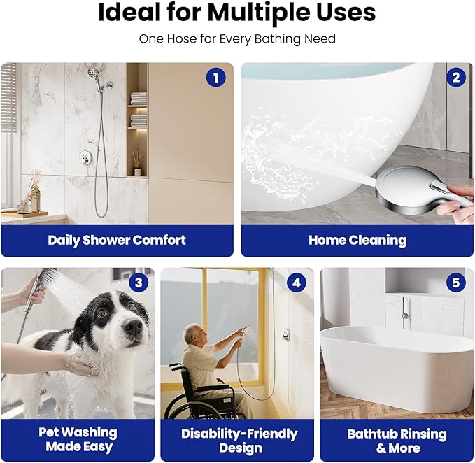 - This extra long 118-inch (3-meter) stainless steel shower hose extension is perfect for handheld shower use, pet bathing, and elderly or disabled care. Ideal for bathtub showers, deep cleaning, and versatile bathroom tasks.