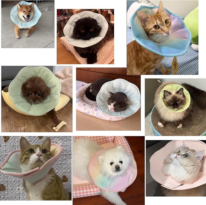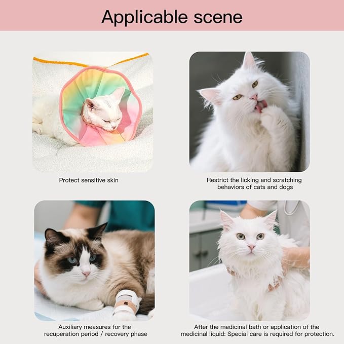 - Soothing color design-Adopting a low saturation gradient color scheme (blue pink Gradient color, yellow green Gradient color) to avoid stimulating Cat emotions stress-reducing .Cat also need to be beautiful and fresh while protecting surgical sites and wounds