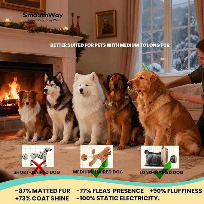 - Gentle Anti-Static Design - Rounded stainless steel tips and smooth edges prevent snagging, ensuring everyday comfort for all pets during brushing sessions.