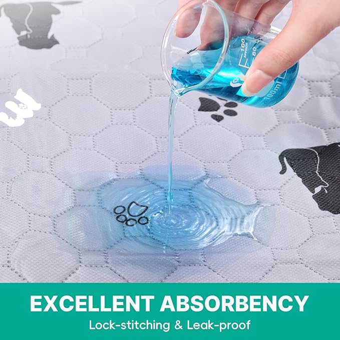- 【Super Absorbent & Leakproof]】This reusable dog pad is made of 4 layers of high-quality material, which is highly absorbent and leak-proof. The high-density absorbent layer can quickly absorb dog urine and odor, and the waterproof layer effectively prevents urine leakage. Safely protect your furniture and floor