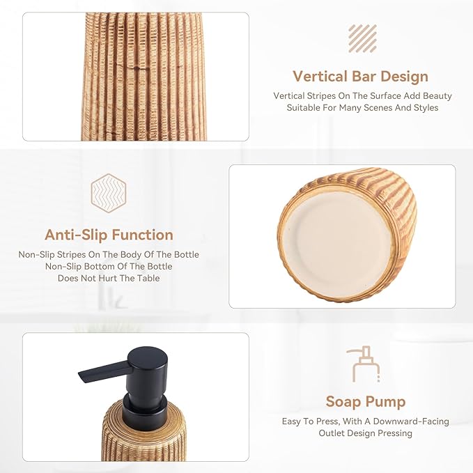 - Ceramic Design: Brown ceramic soap dispenser is made of good quality ceramic, not easy to be damaged, the bottle body is designed with pinstripes, advanced and beautiful modern sense,plastic material pump head smooth liquid discharge.