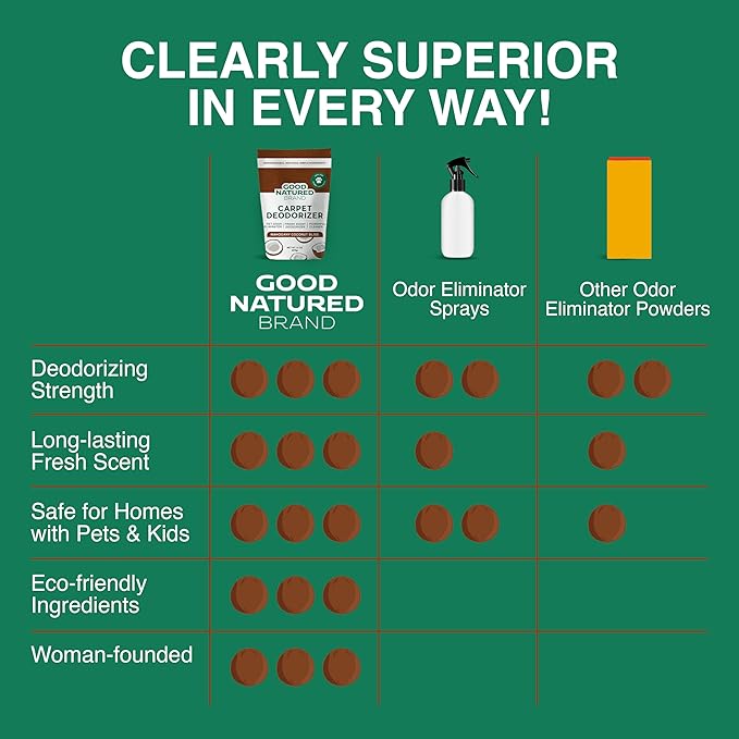 Good Natured Brand | Carpet Deodorizer & Freshener Powder | 31 oz Pet Odor Eliminator for Strong Odor & Pet Urine | Fresh Natural Mahogany Coconut Bliss Scent | Safe for Homes with Pets