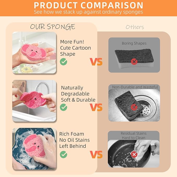 - Versatile and Easy to Use: Whether tackling your kitchen dishes, countertops, or even bathroom surfaces, this sponge is a versatile companion for all your cleaning jobs—wrapped in an irresistibly cute package!