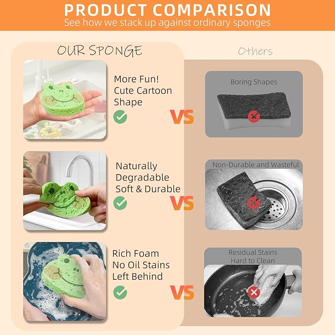 - Versatile and Easy to Use: Whether tackling your kitchen dishes, countertops, or even bathroom surfaces, this sponge is a versatile companion for all your cleaning jobs—wrapped in an irresistibly cute package!
