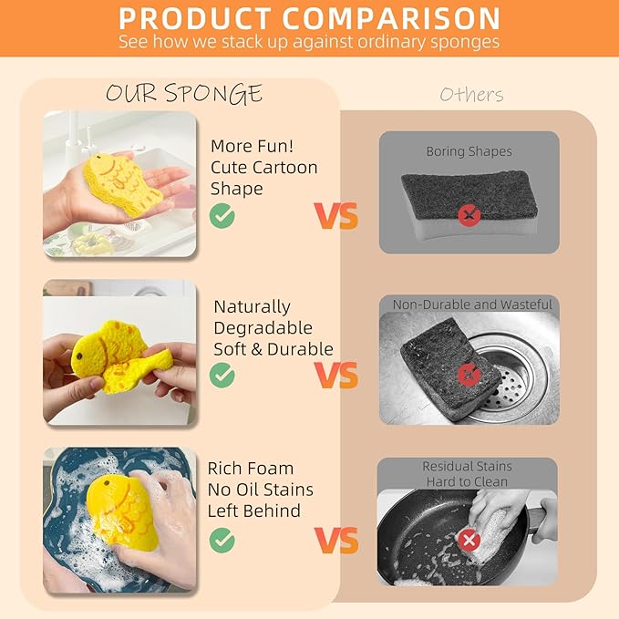 - Versatile and Easy to Use: Whether tackling your kitchen dishes, countertops, or even bathroom surfaces, this sponge is a versatile companion for all your cleaning jobs—wrapped in an irresistibly cute package!