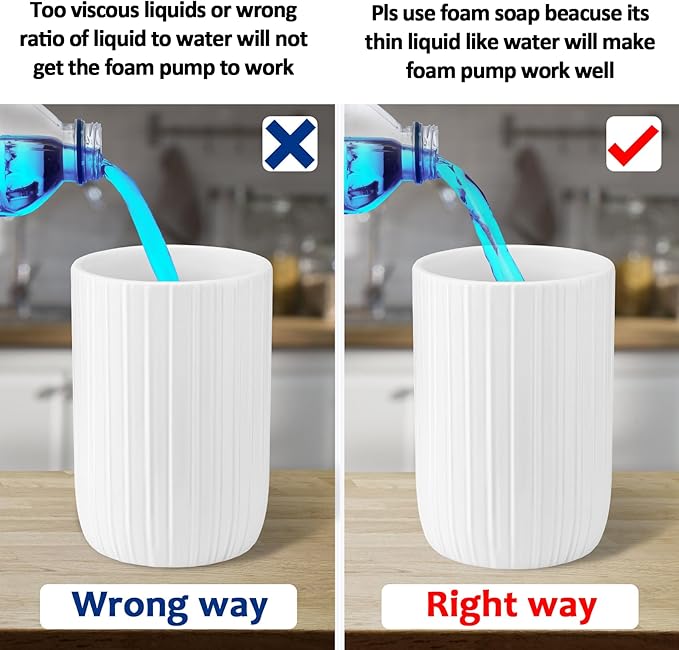 - Ceramic Foaming SOAP DISPENSER - Natural and safe dishwashing ceramic foaming dispenser, can add a variety of room temperature daily use foaming soap. Reusable, refillable, environmentally friendly and recyclable.
