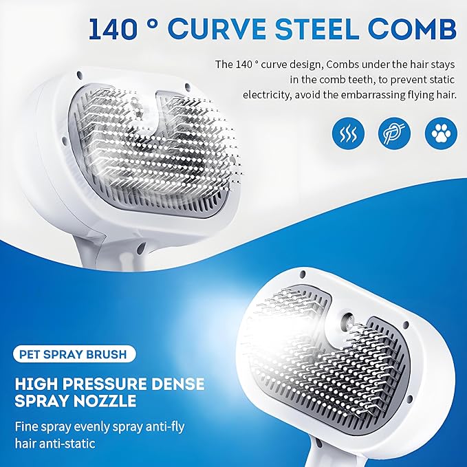 - 【Easy to use】Just fill the water tank with water, turn on the spray switch, even mist will be released, then comb. After combing, press the one-click cleaning button to easily remove fur from the bristles.This mist effectively reduces static and flyaway fur during brushing, making the process smoother and more comfortable.
