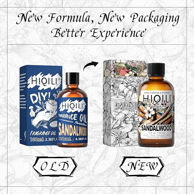 HIQILI Sandalwood Fragrance Oil for Home Diffuser, Luxury Hotel Scent, Perfect for DIY Candle & Soap Making, Add to Body Lotion - 1 Fl Oz