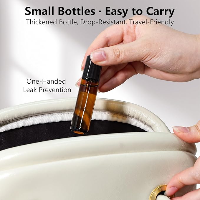 - Portable & Lightweight: These amber roller bottles for essential oils are designed with portability in mind. A must-have for aromatherapy lovers and frequent travelers, convenient for you to enjoy aromatherapy or skin care treatments on the go. They fit easily into your purse, gym bag, or travel kit—without worrying about spill.