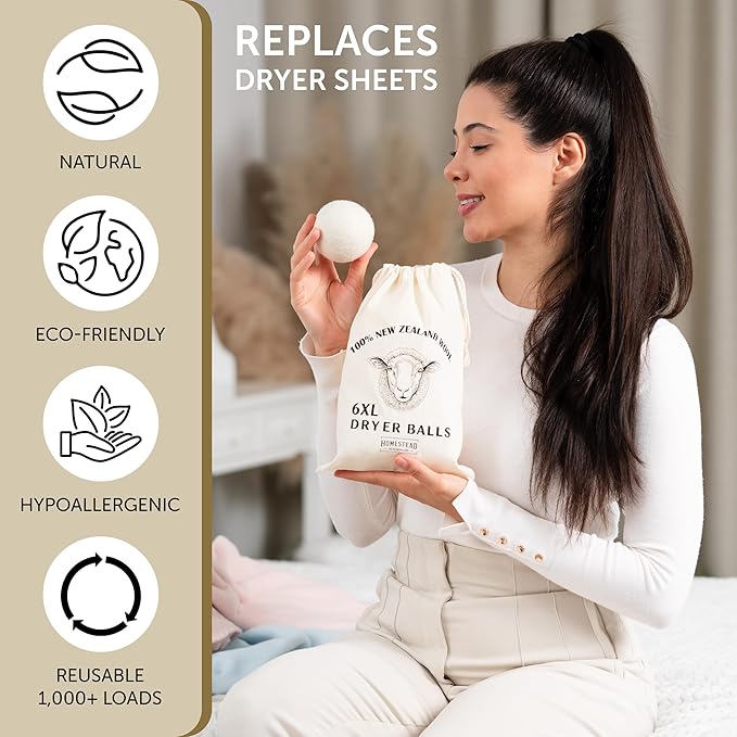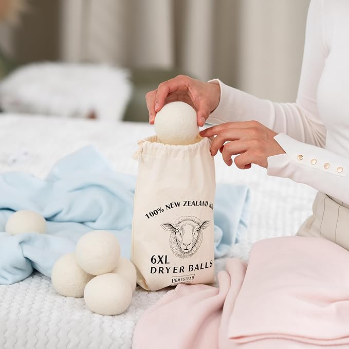 XL Wool Dryer Balls 6-Pack – 100% New Zealand Wool, Natural Fabric Softener & Static Reducer, Reusable Laundry Balls for Pet Hair, Eco-Friendly Dryer Sheets Alternative