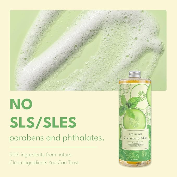 - 【Cool & Uplifting】A refreshing blend of crisp cucumber and cool mint that invigorates your senses with every wash. This foaming hand soap refill is plant-based, gentle, and perfect for daily use in the kitchen or bathroom.