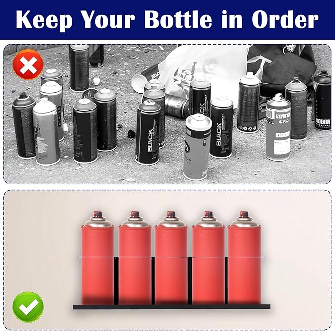 - 【Space-Saving Design】 Each rack measures 16.5" W x 4" H x 3.5" D, holding up to 5 spray cans (20 cans total) while keeping your workspace clutter-free.