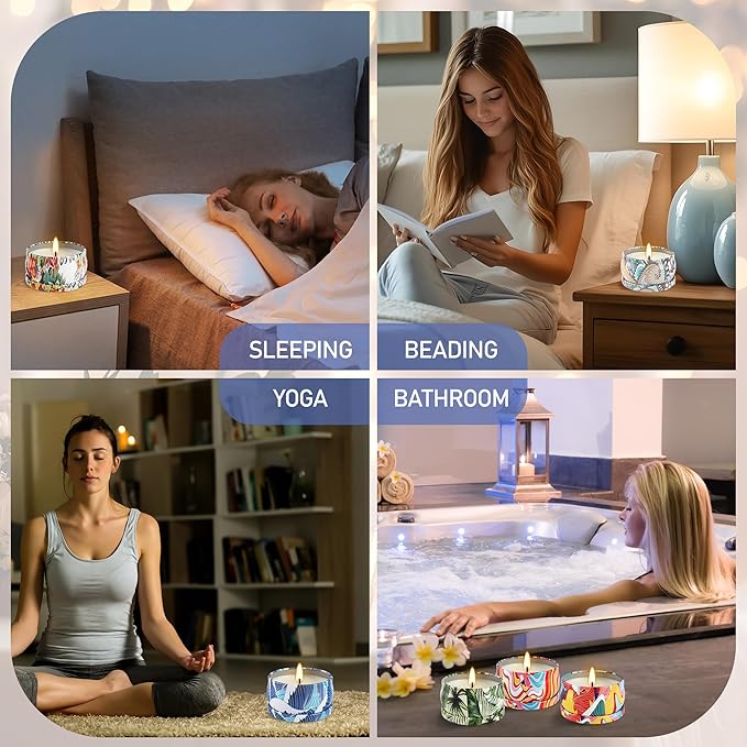 - 3. Ultra-Long 480+ Hour Burn – Enduring Aromatherapy Each 2.5oz candle burns 15-20 hours, with the full set lasting 480-640 hours of continuous ambiance. The slow-releasing fragrance soothes stress, uplifts moods, and transforms spaces into serene sanctuaries—perfect for meditation, baths, or winding down after a long day.