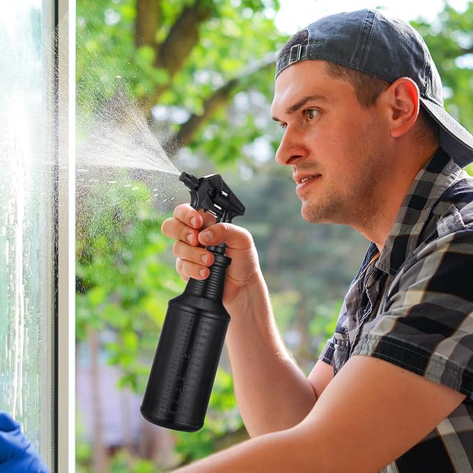 - Leak-proof Sprayer: these black spray bottles for cleaning are equipped with a strong trigger and adjustable nozzle, single stream, atomized spray and two "off" positions are available, easy to use, just gently turn the nozzle to adjust; Note: please switch "off" to "spray" or "stream" before use