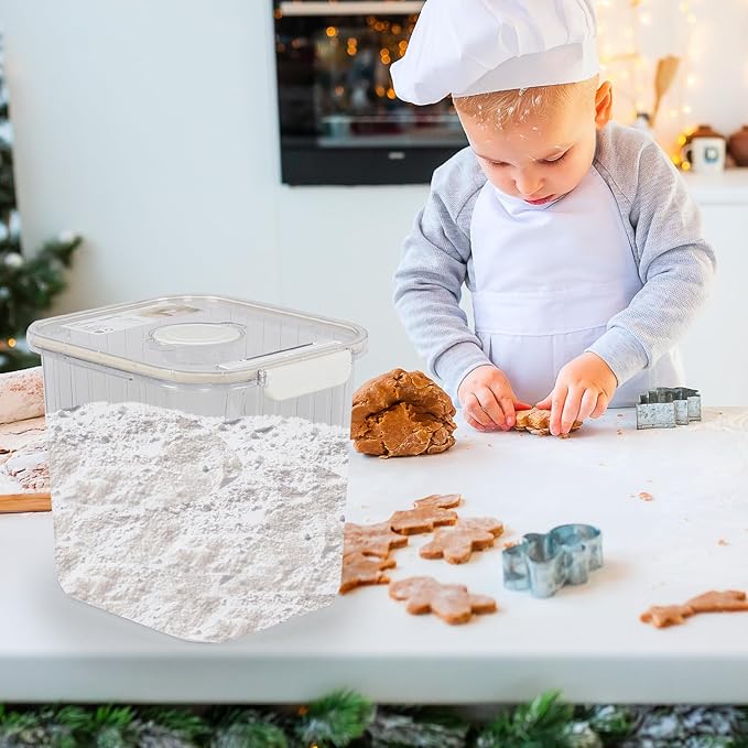 - The dimension of this food storage container is 11.22"L x 9.52"W x 10.23"H, which is very suitable for storing items such as rice, flour, cereals, beans, oats, nuts, pet food