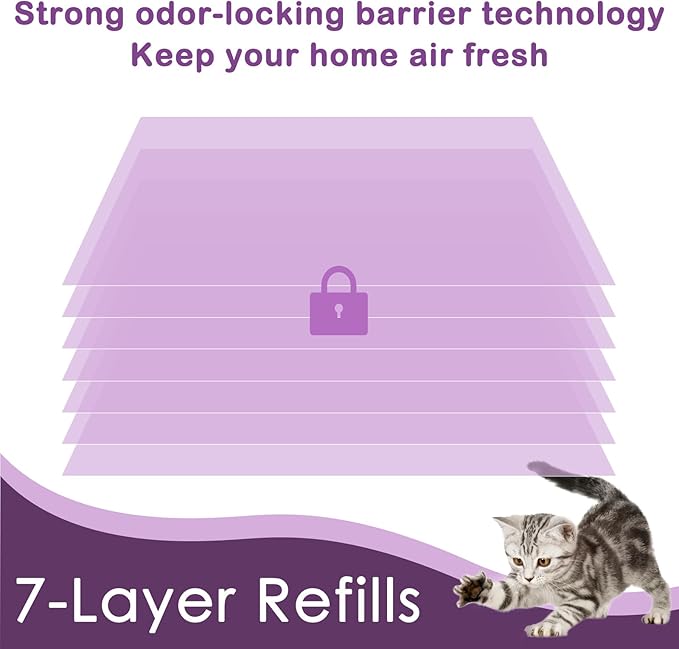 - POWER LOCK ON ODORS:Our refill bags utilize EVOH material and a 7-layer odor-locking design to maximize litter odor containment.