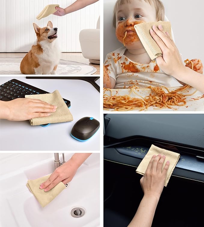 - [Premium, Lint-Free & Scratch-Free] Made from high-quality microfiber fabric, these towels are soft, lint-free, and scratch-free, making them perfect for all surfaces, including sensitive ones. Use them confidently on countertops, dishes, and even delicate automobile interiors.