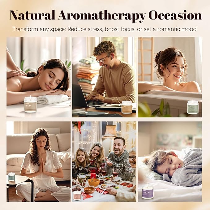 - Ultimate Relaxation & Mood Enhancement: Transform your sanctuary with spa-like luxury. Each 3.5oz candle enhances yoga sessions, baths, or quiet evenings, reducing stress with therapeutic essential oil-inspired scents. The subtle glow creates a calming ambiance—perfect relaxing gifts for women and men seeking serenity.