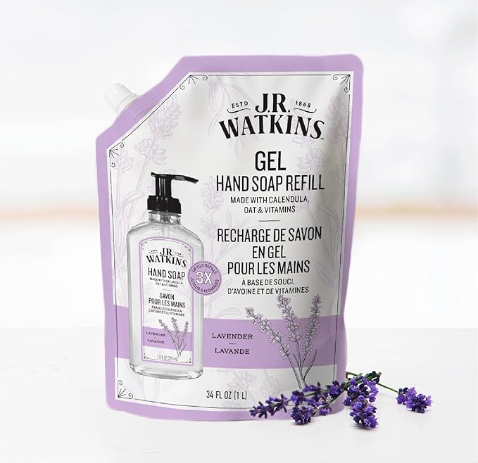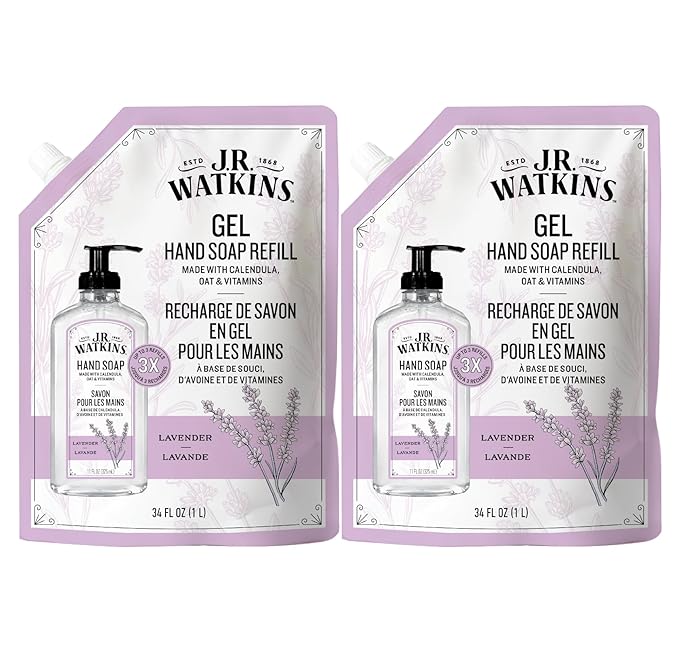 J.R. Watkins Gel Hand Soap Refill, Moisturizing Hand Wash, Formulated with Plant-Based Cleansers, Alcohol-Free, Cruelty-Free, Lavender, 34 Fl Oz, 2 Pack