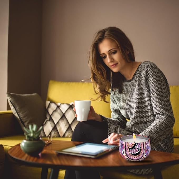 - LONG LASTING TIME: Scented Candles for Home, each jar candle 2.5 oz burning time approaches 15-20h. Portable Tin candles create comfortable aromatic bliss for you and your family.