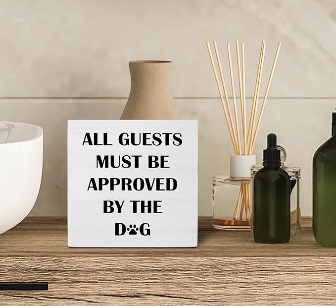 Ku-Dayi Funny Dog Wooden Box Sign, Gift for Women Pet Lovers Wood Box Decorations for Home Office, All Guests Must Be Approved By the Dog Entryway Wooden Block Plaque Desk Shelf Decor 5x5 Inch