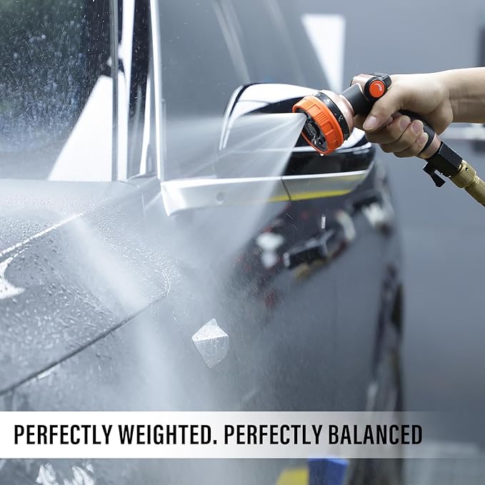 Heavy Duty Garden Hose Spray Nozzle, Metal Water Hose Nozzle with 8 Spray Patterns, Hose Nozzle with Thumb Control On Off Valve for Lawn Watering, Car Washing, Pets Showering