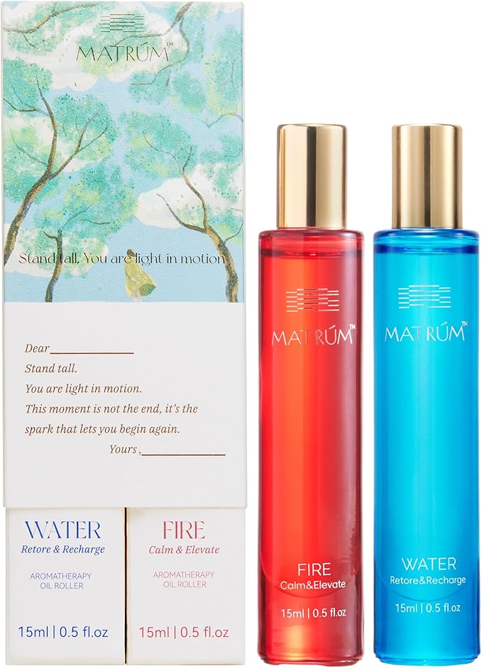 MATRUM Ease Menstrual Discomfort Blend Essential Oil Roll On, 100% Pure Arometherapy Roller for Soothe Pain and Restore Strength, Warm Calming & Relaxation, Fire and Water Duo, 1 Fl Oz