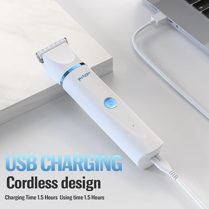 - 【All-In-One Pet Clipper Kit】 - Petygo Pet Trimmer Kit comes with 1 interchangeable trimmer heads and 1 nail grinder head, a USB charging cable, and a small brush.ideal for dogs, cats, and other furry pets. Perfect for full-body grooming and nail trimming.
