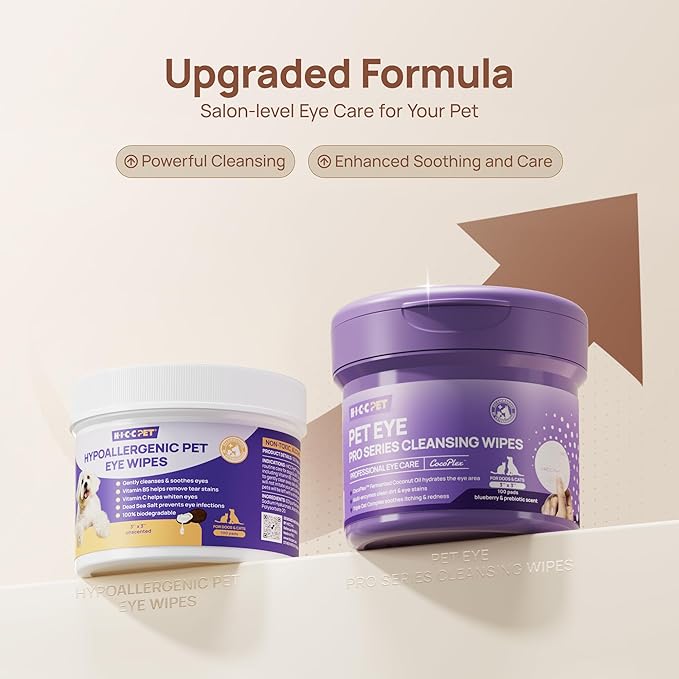 HICC PET Eyes Wipes for Dogs & Cats Upgraded Pro Version, Vet-Recommended Dog Eye Wipes Hypoallergenic, Dog Tear Stain Remover, Remove Debris, Mucus & Discharge - 100ct, Blueberry
