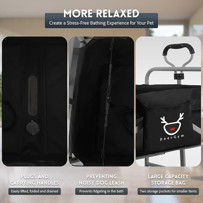 - 1.DeerGym Dog Bath-Stroller One Cart, Multiple Uses:Say goodbye to the frustration of pet supplies piling up at home! This 2-in-1 Stroller-Bath is your ultimate solution for saving space and adding convenience. It ingeniously combines a professional-grade dog bathtub with a comfortable and safe outdoor dog stroller. No more spending double the money and taking up double the space for bulky, separate dog bath and pet stroller. With just one DeerGym Bath-Stroller, you can easily switch between bath mode and travel mode.