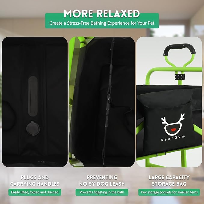 - 1.DeerGym Dog Bath-Stroller One Cart, Multiple Uses:Say goodbye to the frustration of pet supplies piling up at home! This 2-in-1 Stroller-Bath is your ultimate solution for saving space and adding convenience. It ingeniously combines a professional-grade dog bathtub with a comfortable and safe outdoor dog stroller. No more spending double the money and taking up double the space for bulky, separate dog bath and pet stroller. With just one DeerGym Bath-Stroller, you can easily switch between bath mode and travel mode.