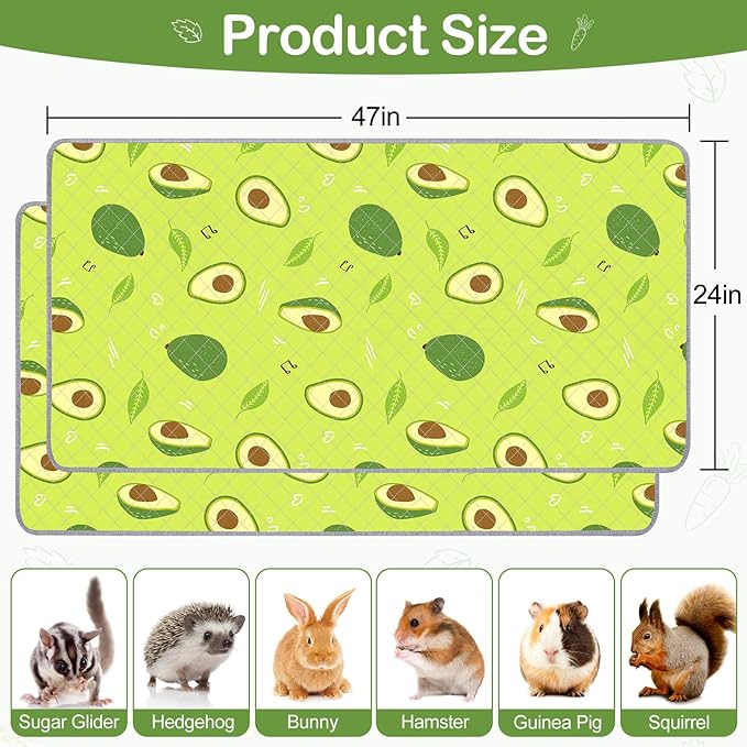 Bienbee Guinea Pig Bedding, 2 Pack 47" x 24" Reusable Guinea Pig Cage Liner Waterproof and Absorbent Small Animal Bedding Washable Pee Pads for Small Pet Hamster Rabbit Squirrel, Avocado