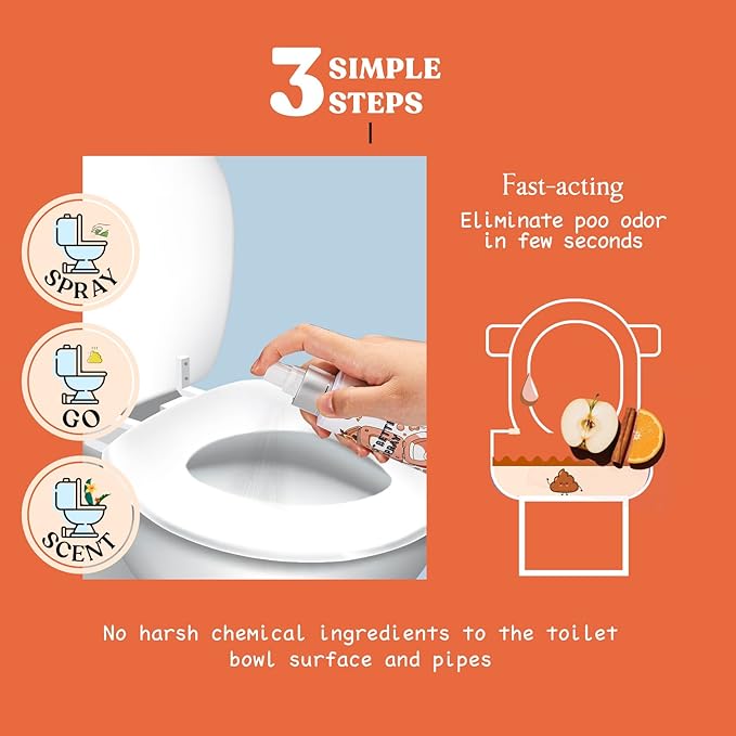 - LONG LASTING FRESHNESS: 2*3.4 FL.OZ ≈ Up to 400 Uses ≈ 2 Months for average poopers. It neutralizes the odor of poop in few seconds, and no one else will ever know
