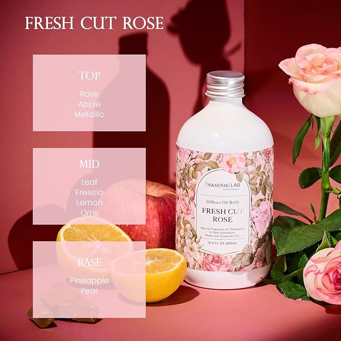 M&SENSE Reed Diffuser Oil Refill, 16.9oz (500ml) with 10 Reed Sticks, Fresh Cut Rose Scent Home Fragrance, Scented Oil Refills, Natural Essential Oils for Diffusers, Home Décor for Home Spa Office