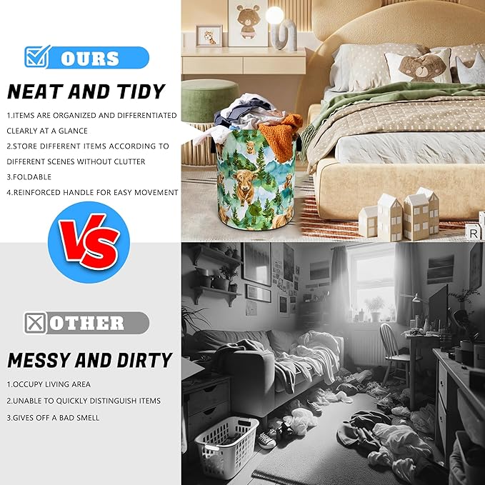 - Multi-Purpose Basket: In addition to laundry, it is also very suitable for storing and organizing books, blankets or other items. It has a wide range of uses, keeping your living environment clean, beautiful and tidy. It is a multi-functional product. The artistic design laundry basket is placed in the bathroom, bedroom, laundry room, children's room, dormitory and other places. It is a practical and fashionable item.