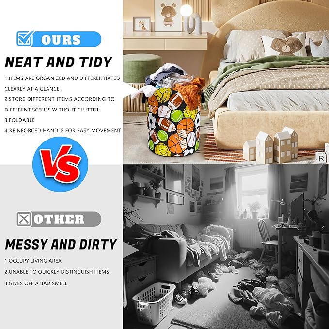 Ball Games Laundry Basket Oxford Cloth Sports Laundry Hamper With Handle Foldable Portable Clothes Storage Basket 18.9 X 16.5 In Storage Bag For Laundry Room/Bathroom/Bedroom/Dormitories