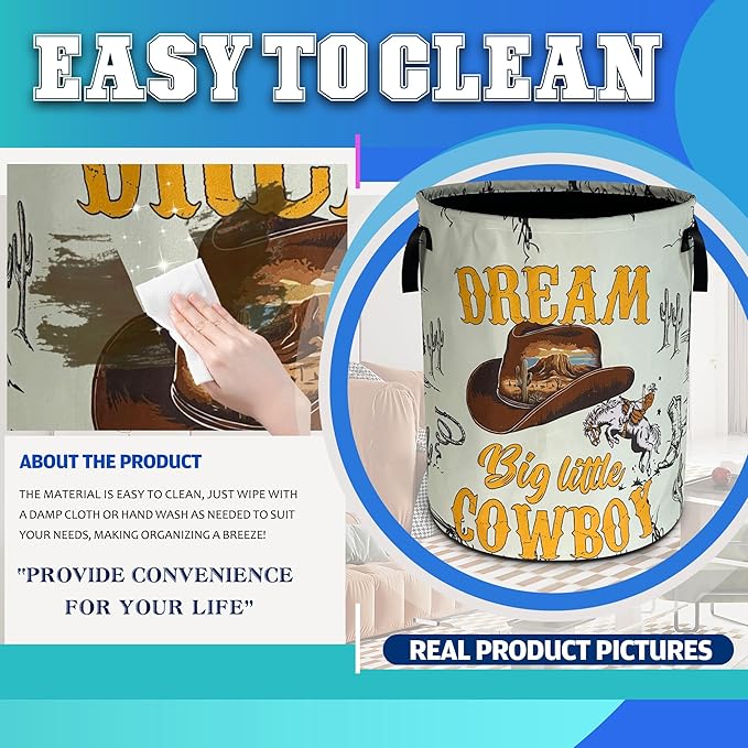 Western Cowboy Laundry Basket Oxford Cloth Cowboy Hat Desert Laundry Hamper With Handle Foldable Portable Clothes Storage Basket 18.9 X 16.5 In Storage Bag For Laundry Room/Bathroom/Bedroom