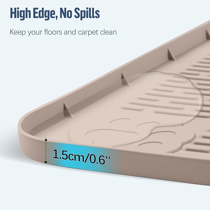 Pee Pad Holder for Dogs, 40" x 28" Silicone Pee Tray Mat Leak-Proof, High Edge, No Spill Pet Pad Holder for Puppy, Cat, Rabbit, Dog Training Pads for Home Floor Protection (Khaki)