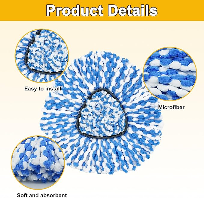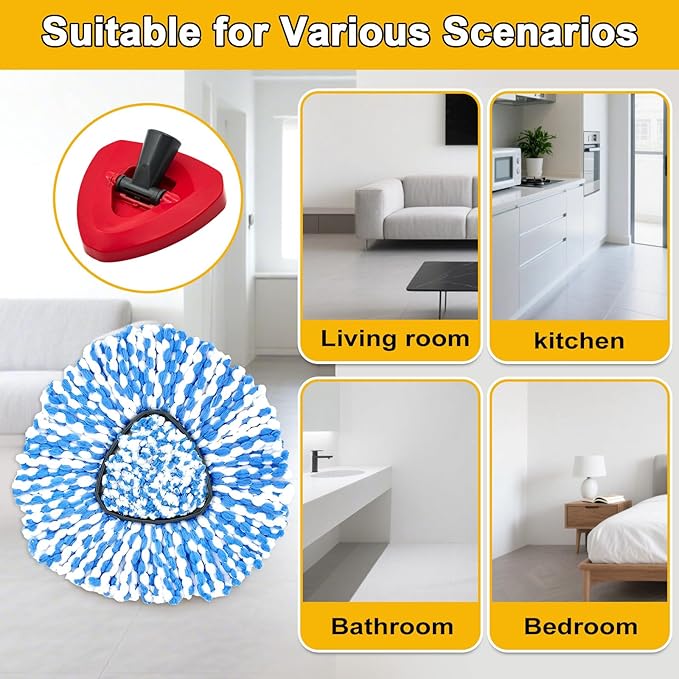 - Premium Microfiber Deeper Cleaning:Made from 100% high-quality microfiber, this mop head delivers powerful water absorption, perfect for both wet and dry cleaning. It effortlessly lifts and traps stubborn dirt and grime while remaining durable and machine-washable for long-lasting use.
