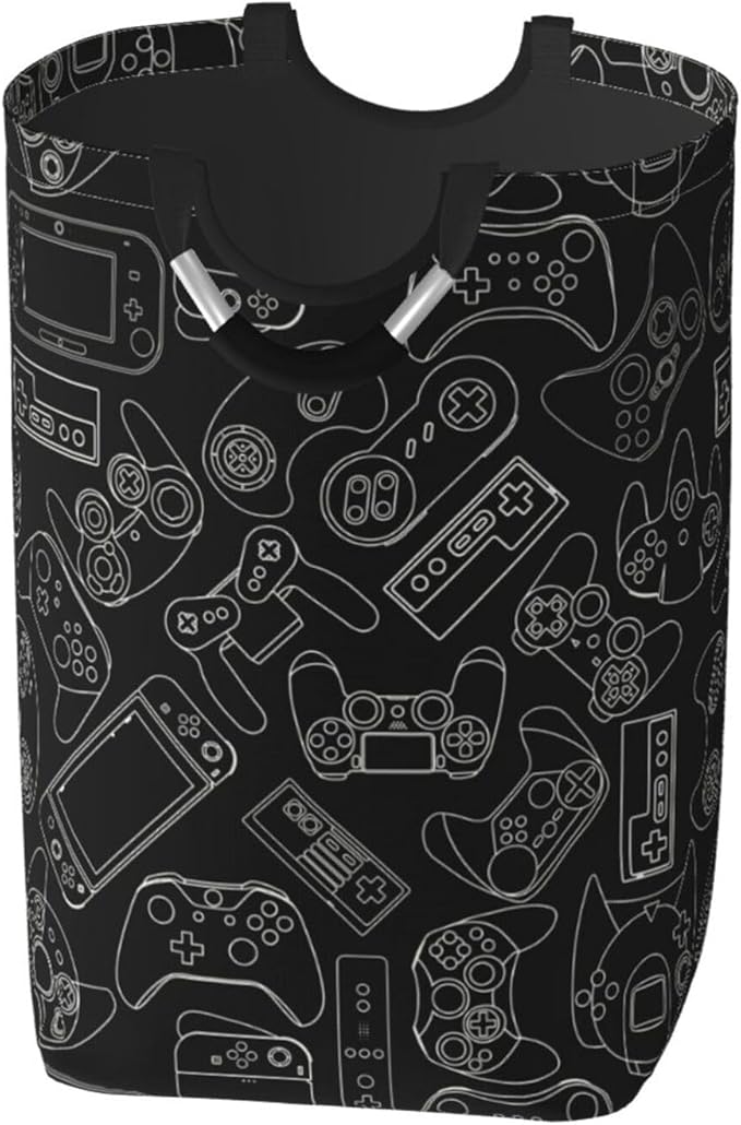 Video Game Controller Background Large Laundry Hamper Bag With Waterproof Liner - Gaming Gadgets Laundry Basket Foldable Clothes Storage Organizer For Bathroom Bedroom Nursery Dorm