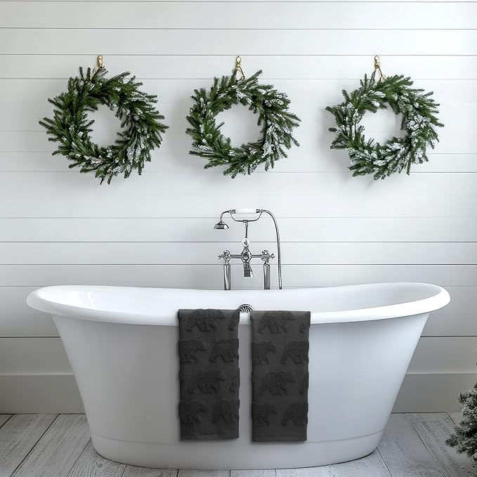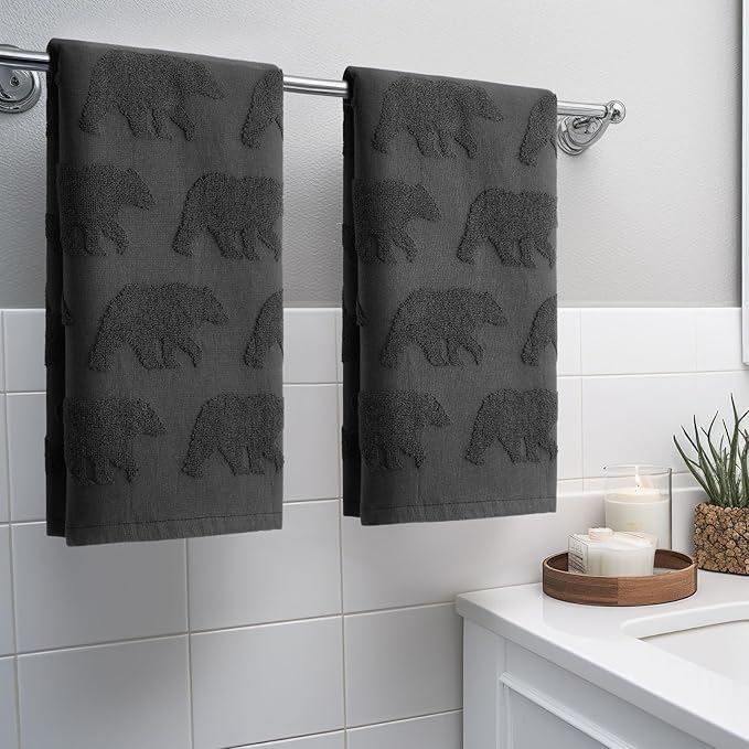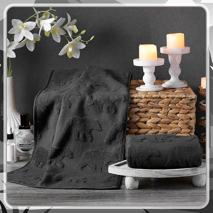 - funny design with jacquard aesthetics: our cabin bathroom towels come in a charcoal gray neutral scheme that adds a modern atmosphere to your home; featuring 3D bear jacquard weave motifs, they boost the festive mood; embroidery craft allows you can use the towels as nice decorations