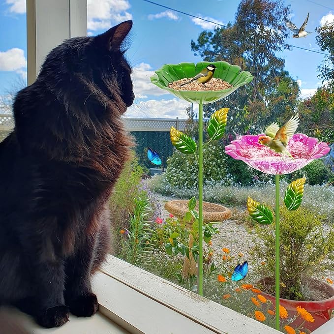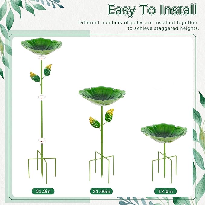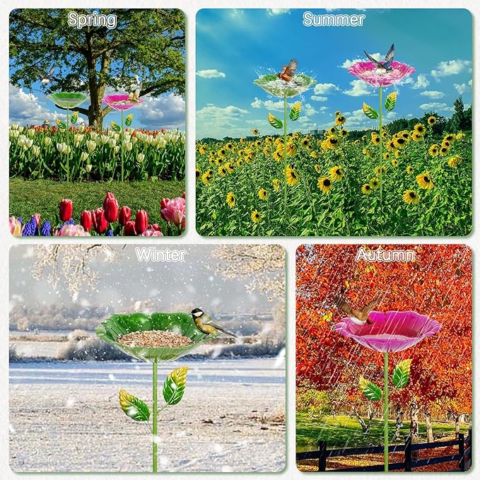 - Beautiful design: The metal bird baths for outdoors is designed in the shape of flowers, with colorful colors and the stem diameter and branches of flowers, whether it is used as a bird bath and feeder or to decorate the garden, it is very attractive.