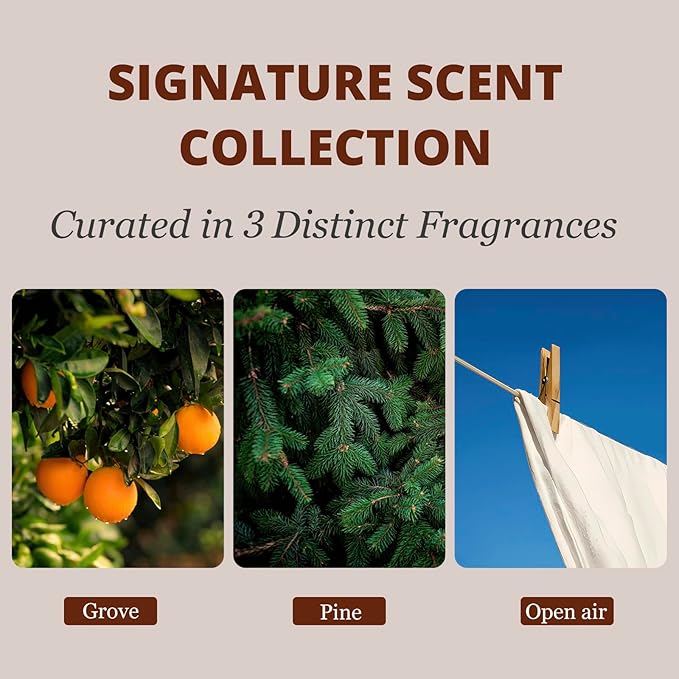 - Made of High-grade Materials: Made from sustainable wood and embedded with a magnet for easy attachment, our fresheners fit seamlessly onto your car visor. The grove scent blends earthy mountain greens, juicy citrus, and warm vanilla for an invigorating, woodsy embrace. The open Air scent captures the purity of fresh air, crisp linen, and hints of morning dew for a revitalizing, crisp awakening. The pine scent combines rugged mountain pine, forest moss, and aromatic cedar for a deep, serene forest journey.