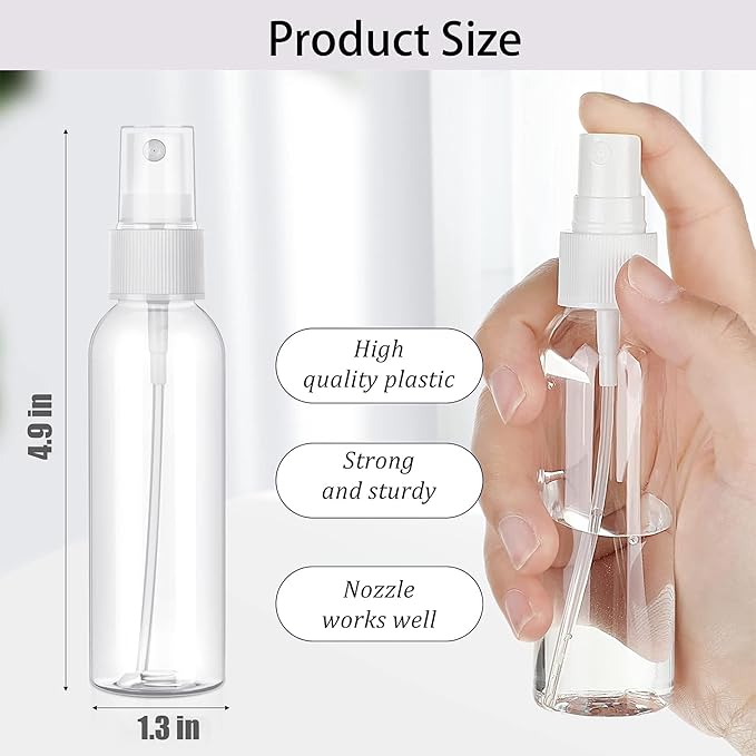 - 【What You Get – 100 Bottles and Nozzles】 Includes 100 pieces of 2 oz clear plastic spray bottles with 100 matching mist sprayers. Ideal for bulk storage, replacement, or sharing with family and colleagues for various daily needs.
