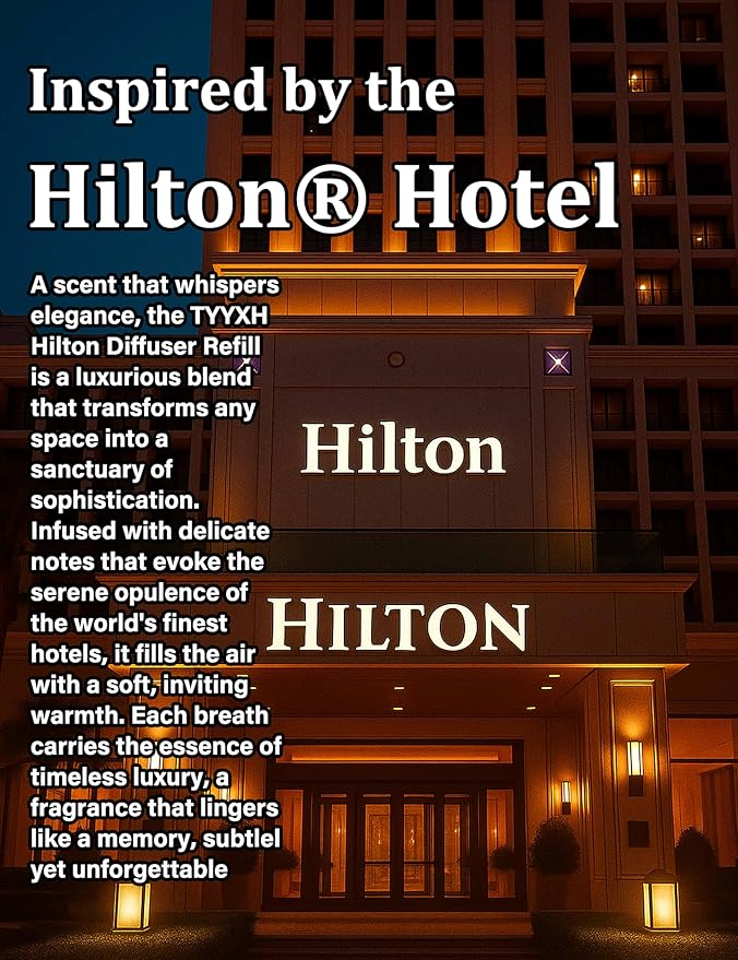 - BRING THE HILTON HOTEL AMBIENCE INTO HOME: Transform your space into a five-star escape with TYYXH Hotel Collection Diffuser Oil. Opening with fresh breezy notes, green grass, and juicy fruit, the scent awakens your senses like a seaside morning. Soon, lily of the valley and sea breeze bloom softly, filling the air with grace and calm. Finally, earthy oakmoss and warm musk linger, wrapping you in timeless comfort and understated luxury. Natural, soothing, and long-lasting, this hotel diffuser oil refined aroma evolves over 6–8 hours, turning daily moments into extraordinary experiences and creating the serene sophistication of a Hilton lobby—right in your own home
