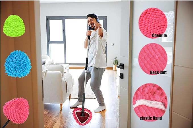 - Red Blue Green Color:These chenille mop heads are in classic bright red,.blue,green color.Nice color for different room different use.ect:the living room is red, and the kitchen is green